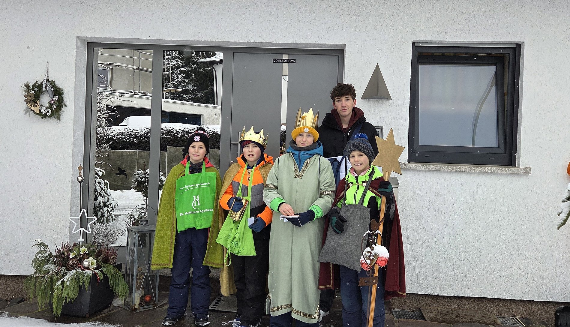 15 Sternsinger waren am Samstag, 8. Januar, in Herschbach kreativ und kontaktlos unterwegs und spendeten den Segen. Danke für den freundlichen Empfang und Ihre großzügige Spende.