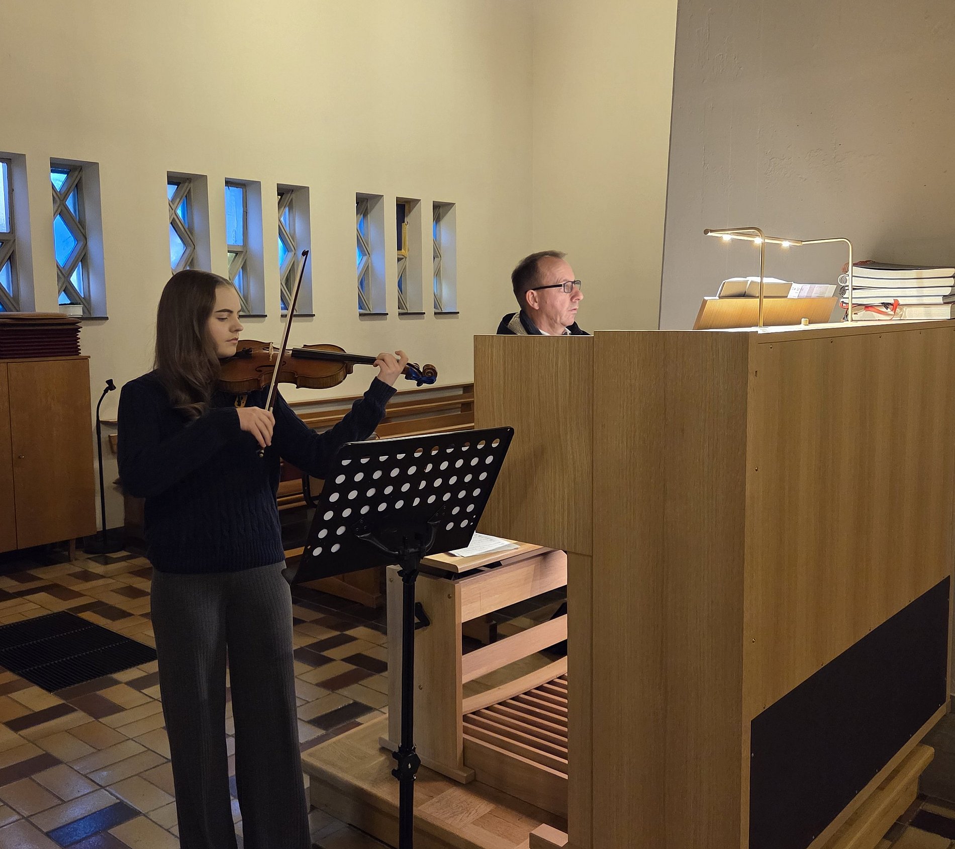 Christoph Engers an der Orgel und Paula Oslislok mit der Geige schufen mit Cantabile No. 2 von Enrico Pasini und La Callifa Ennio Morricone eine stimmungsvolle Atmosphäre.