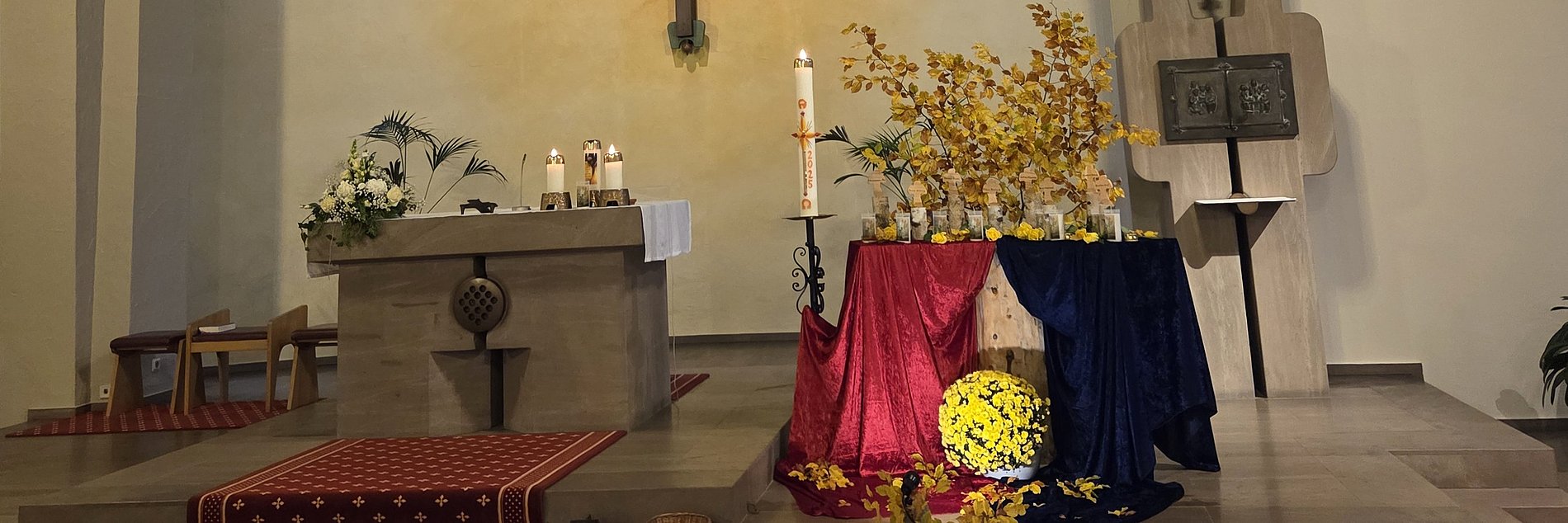 An Allerheiligen, in einem besonders gestalteten Gedenkgottesdienst, erinnern wir uns nocheinmal mit den dazu eingeladenen Angehörigen und der Gemeinde der Verstorbenen.