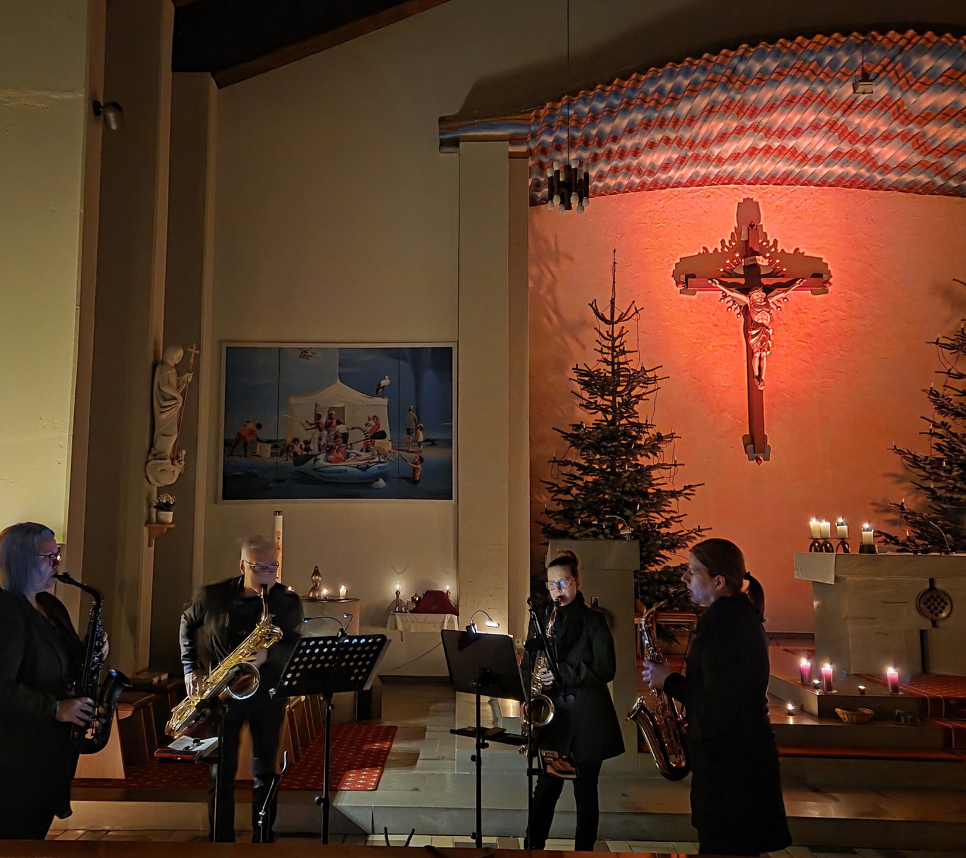 Musikalisch wurde der Gottesdienst von Christoph Engers an der Orgel begleitet. Zusätzlich setzte ein Saxophonquartett mit seinen Beiträgen besondere musikalische Akzente. Die sorgfältig ausgewählte Musik unterstrich den feierlichen Charakter des Abends.