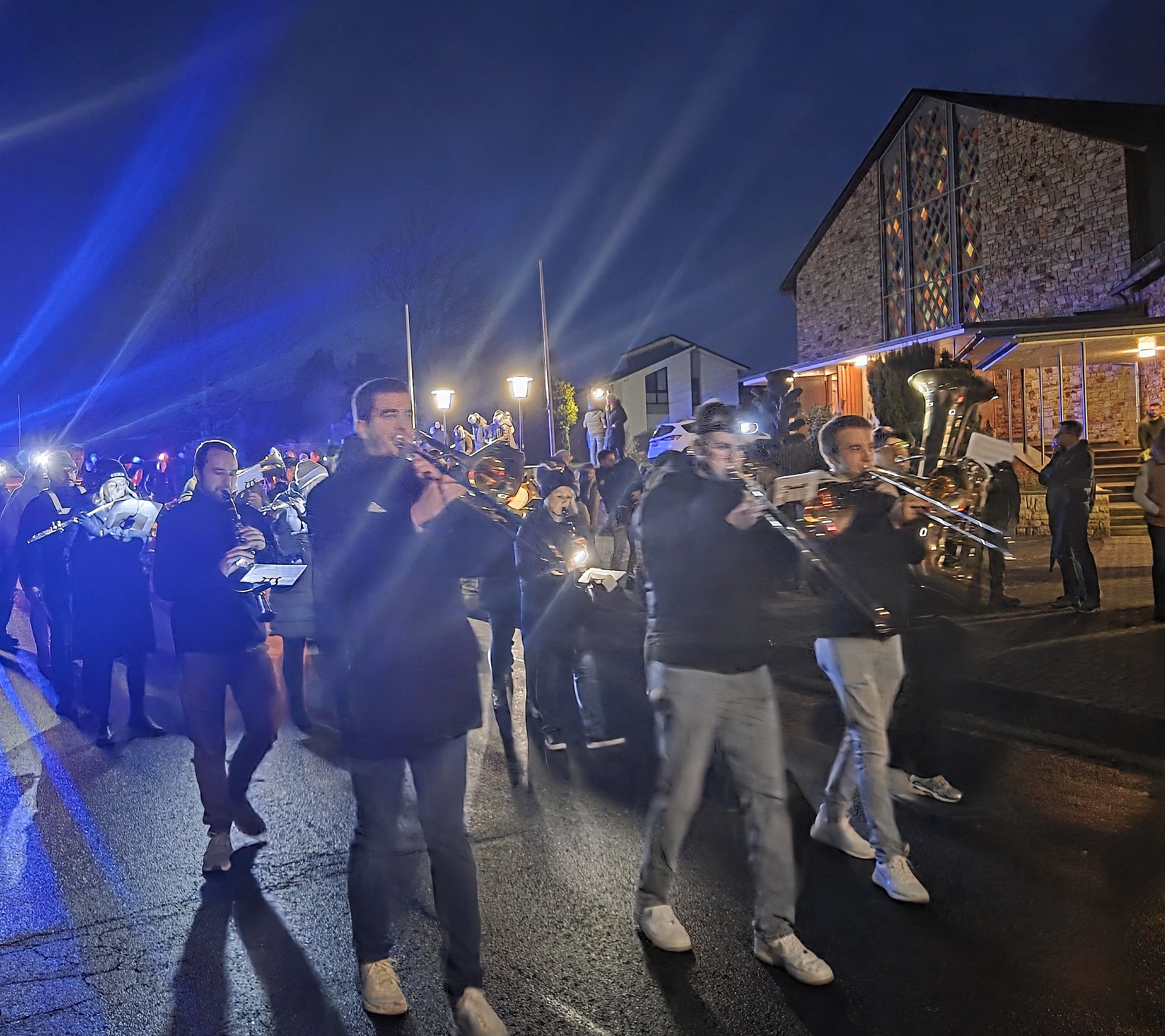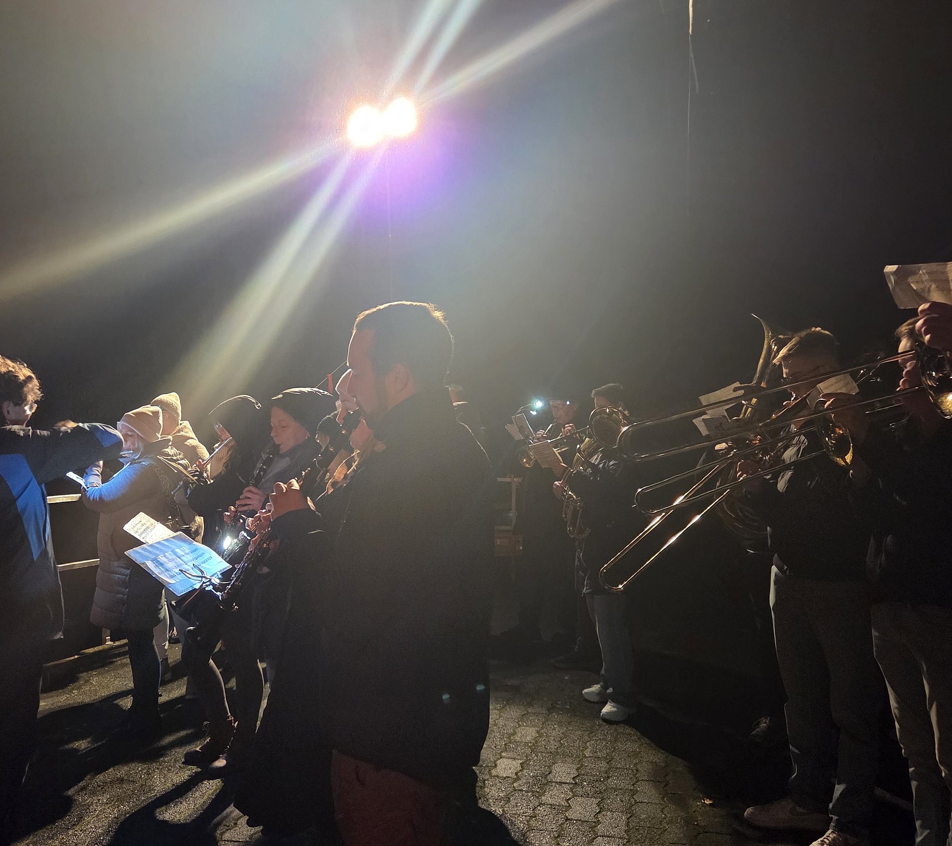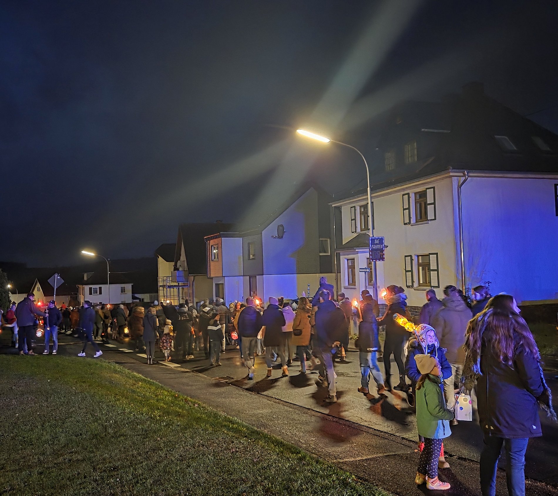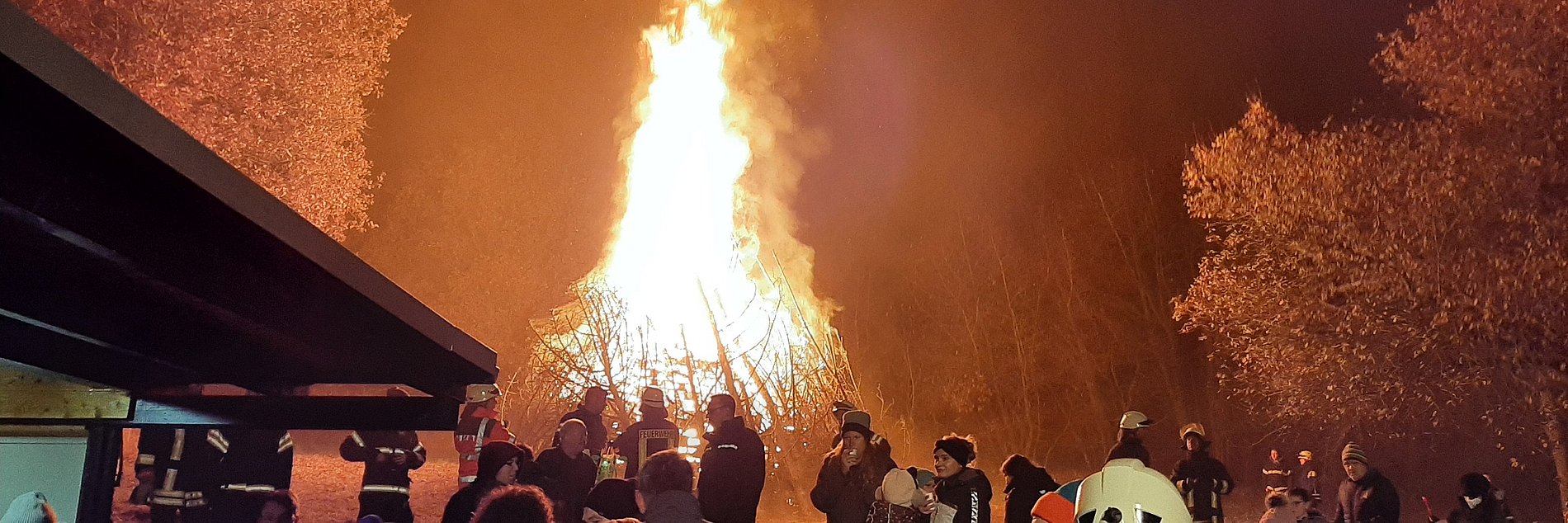 Zum Abschluss spielte der Musikverein noch einmal „Großer Gott, wir loben dich“ und schuf einen würdigen Rahmen. Danach verteilte der Bürgermeister die leckeren Bretzeln an die Kinder, während Erwachsene Glühwein und kalte Getränke genießen und sich mit Würstchen und Brötchen stärken konnten. Lange blieb man anschließend am wärmenden Feuer in geselliger Runde zusammen.
