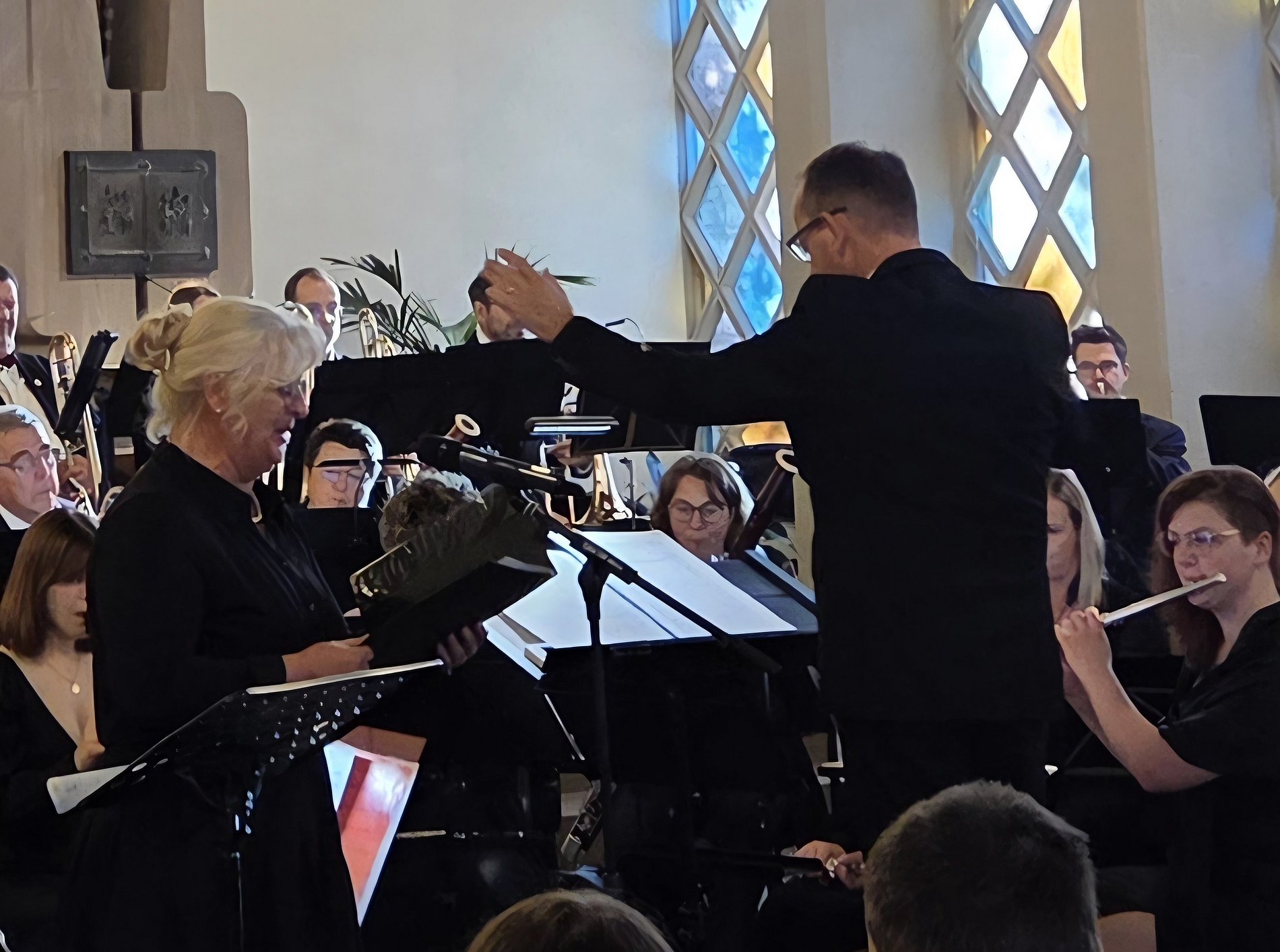 Emotional wurde es auch bei „Vidda“ des norwegischen Komponisten Ole Edward Antonsen: Fabian Sayn (Flügelhorn) und Marco Leicher (Trompete) ließen ihre Soli eindrucksvoll durch das Kirchenschiff erklingen – ein musikalischer Ausflug in die Weite Norwegens, der für Gänsehautmomente sorgte.